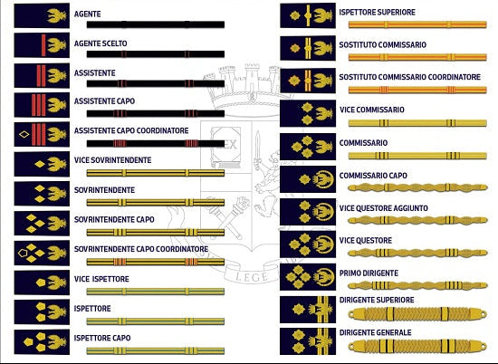 Gradi a strappo Polizia di Stato per Polo (Quadrato). Seleziona il grado scelto.